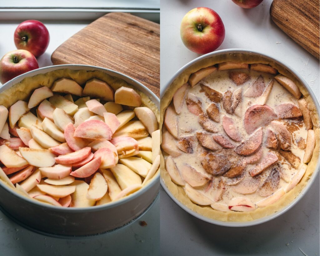 This dessert is reminiscent of German apple cakes made with sweet pastry and custard. I tweaked the original recipe for a sweeter custard with a little less pastry, though the pastry is still quite thick, which provides a wonderful base for the rich and creamy custard. The apples shine through and you get a seasonal treat that really does hit the spot!